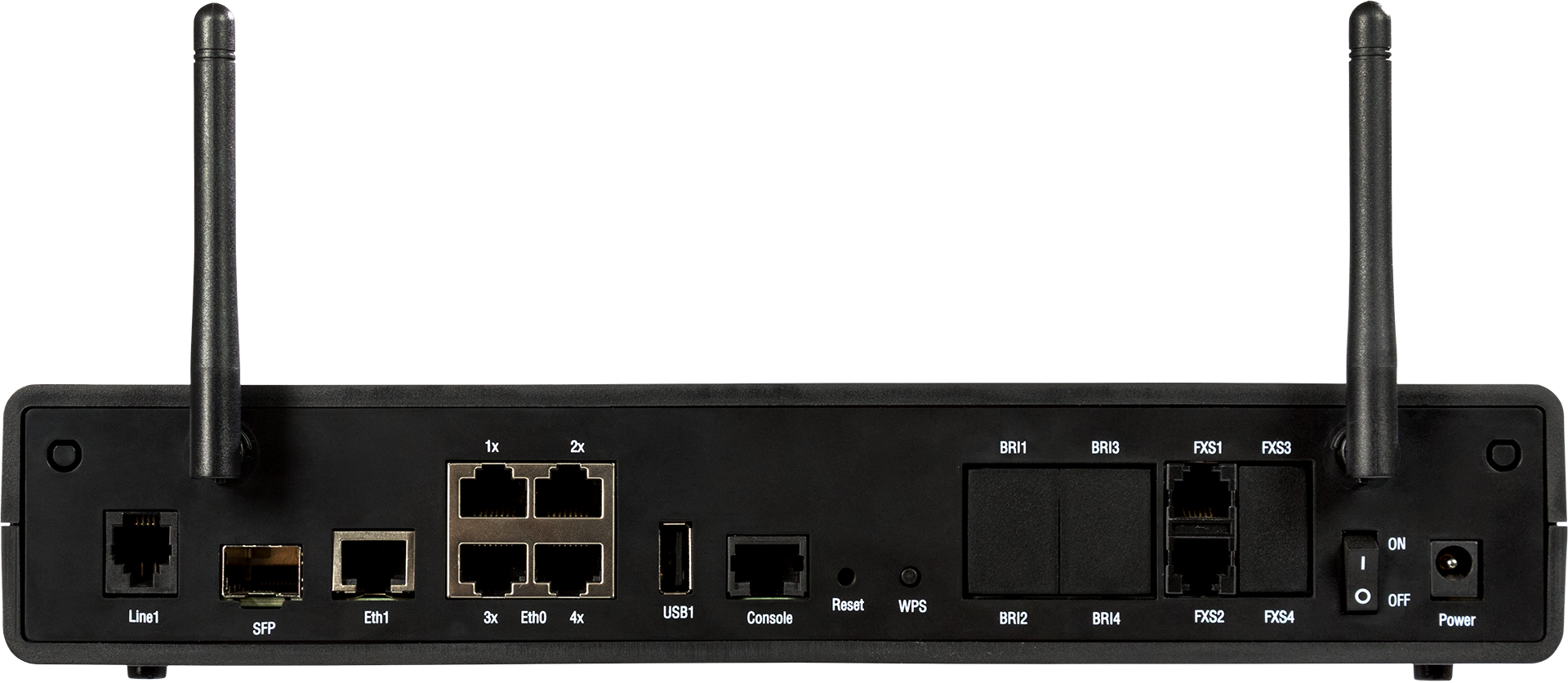 Router with single line VDSL2 35b interface, GE / SFP WAN and 2 FXS analog ports.